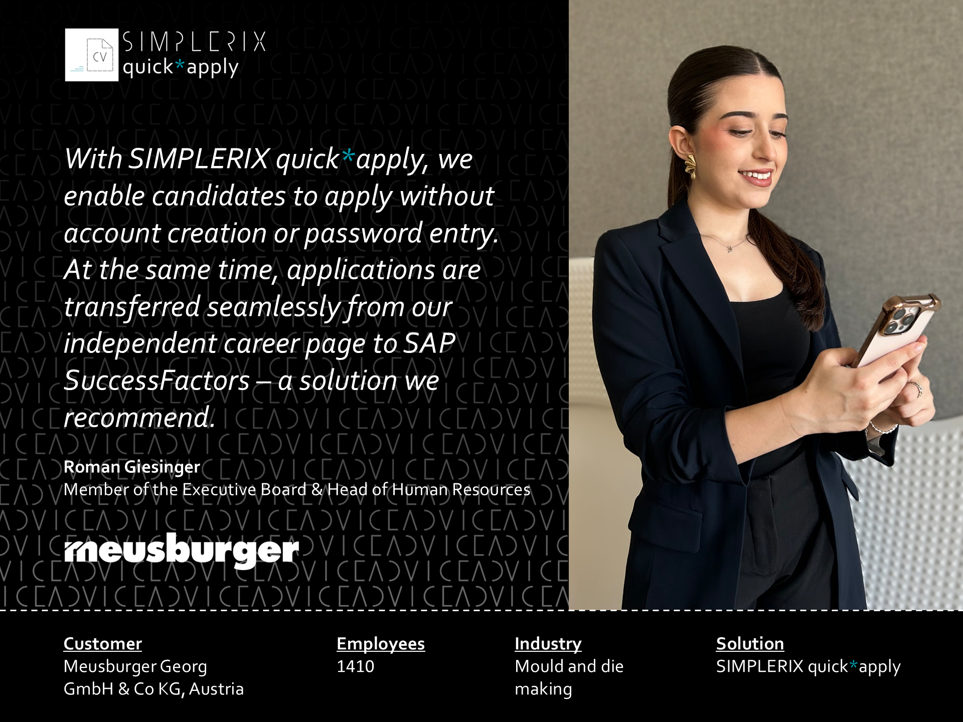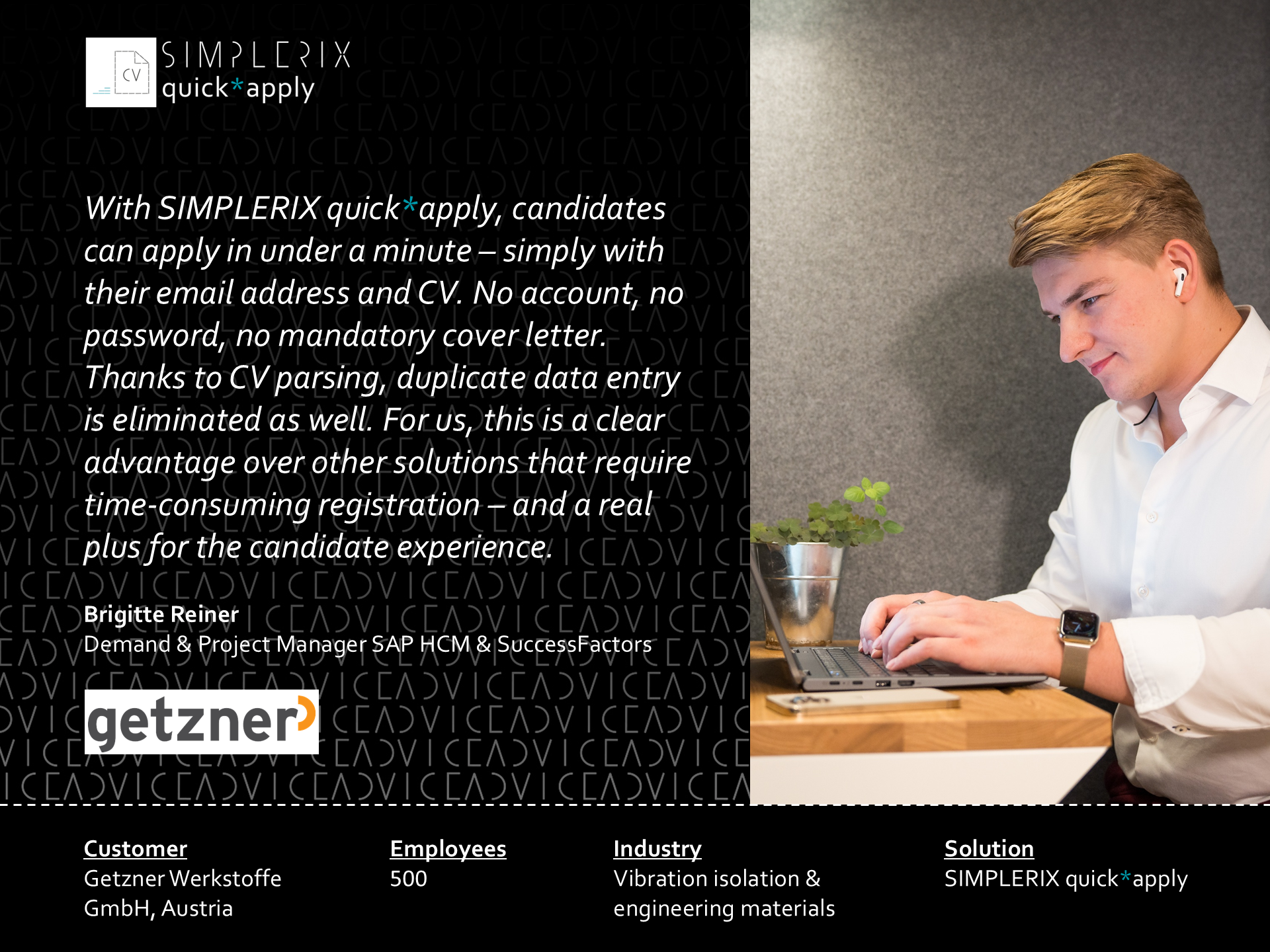 Success story video with Getzner WerkstoffeRecruit more efficiently with SAP SuccessFactors and SIMPLERIX quick*apply